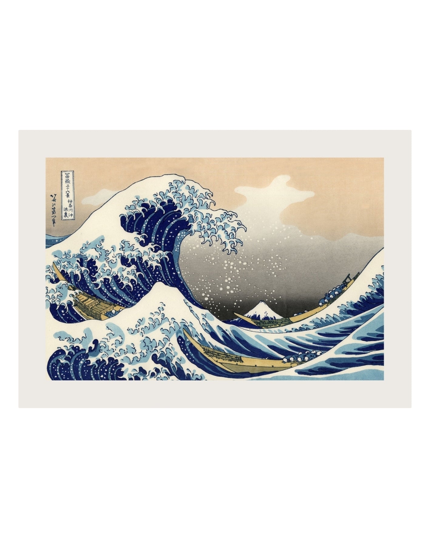 Plakat „The Great Wave off Kanagawa” Katsushika Hokusaia – Ikoniczny obraz przedstawiający dramatyczną, potężną falę morską, w odcieniach błękitu i bieli, z subtelnymi akcentami beżu. Idealny do wnętrz w stylu japońskim, minimalistycznym oraz klasycznym.